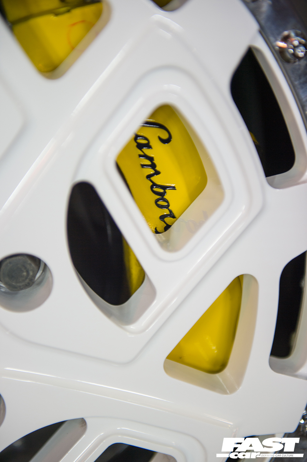 “These Brembo 18Z callipers have had the faces machined off, calliper offset, and basically I cannot ever fit new pads again if I want to keep these wheels on and tuck them under the front arches,” he winces. “Thoroughly testing them to make sure they were safe after machining was a total nightmare too. They look good though!”
