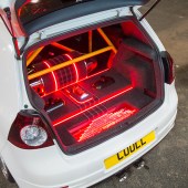 There were plenty of other bits and bobs appearing at this time too, because when Stuart goes shopping for car parts it’s like Imelda Marcos buying shoes. He just has to keep going and going until there’s nothing left for anyone else. A Wavetrac LSD upgrade was a no-brainer, given all of the extra power he was planning to shove through the tortured front rubber, and the transmission was additionally bolstered by JBS’s proprietary seven-disc Stage 2 racing clutches for the DSG ’box. Everything underneath was thoroughly polybushed, the stock suspension was junked for a KW V3 setup in tribute to his old Lupo, the engine received forged rods from Integrated Engineering and a lovely shouty Milltek decat system. And, of course, there was the addition of the water-methanol injection system.