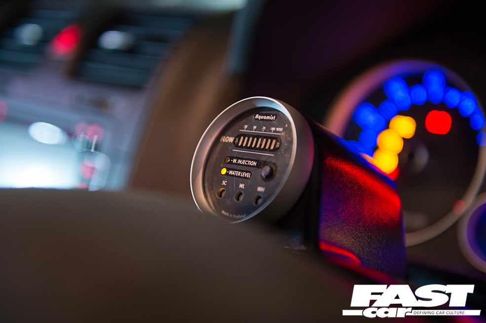This makes for an excellent pub boast. The science of it is to reduce inlet temperatures by up to a 100˚C, markedly increasing fuel efficiency, eliminating detonation, and ultimately increasing peak power by around 20 percent. Which is all good fun. It basically achieves this by squirting a finely atomised mist of water-methanol into the combustion chambers at just the right time in the fuelling cycle for tiny rabbits to be pulled out of hats and all manner of fireworks to go off.