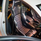 The final flourish was to revamp the interior, with a half-cage colour-coded to those mercurial callipers, a full boot build, and a set of truly special front seats. They’re fixed Recaro SPA race buckets which have been trimmed in the correct leather and Interlagos tartan, and they look utterly divine. And no, you can’t buy these off the shelf.