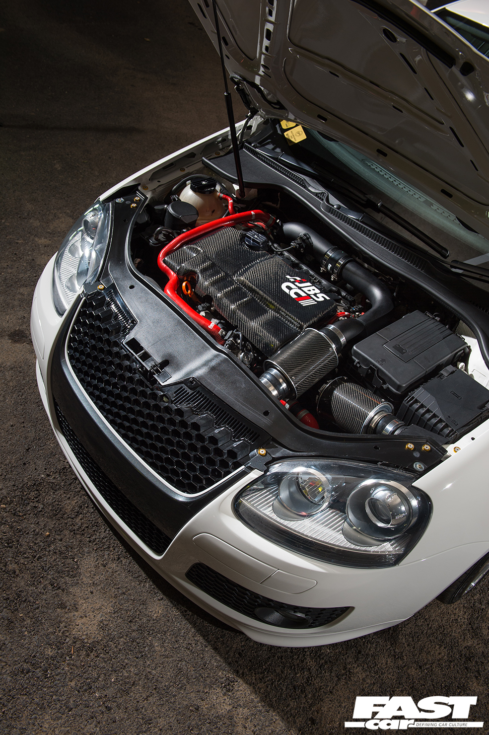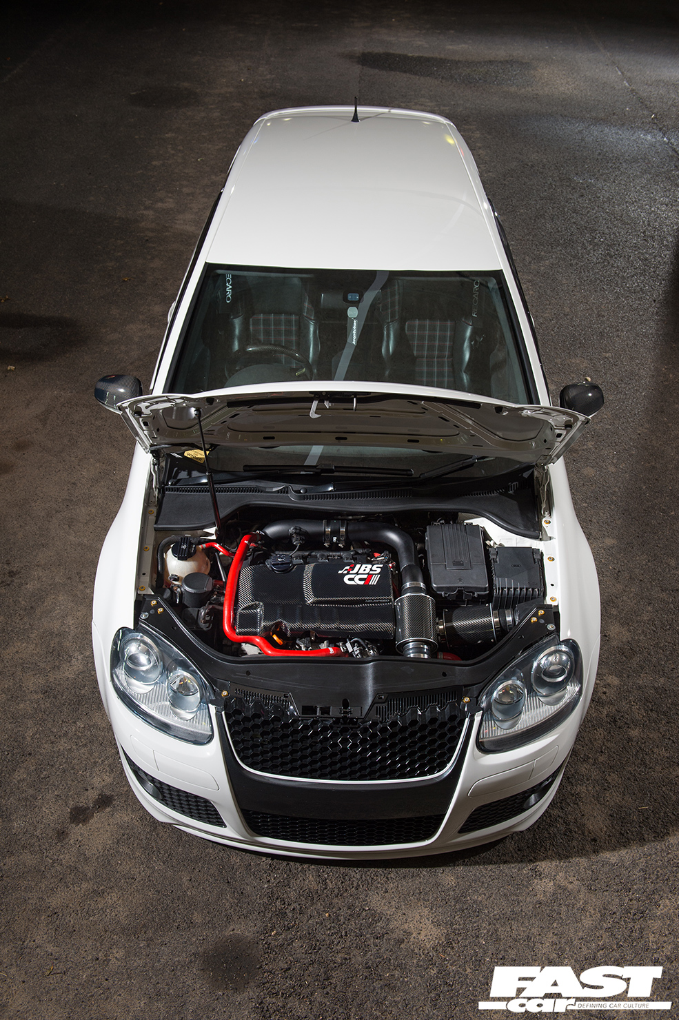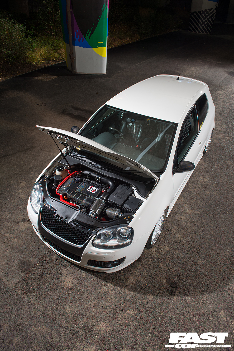 “I fully intended to keep it standard,” he says (yep, we’ve heard that one before!). “But I had just started working overseas in a country where walking down the street wasn’t exactly safe, and boredom soon set in. I started buying parts and reading up on forums about what other people had done to their Mk5s. It was around then that I stumbled across JBS Auto Designs online – they’re big turbo specialist based in Chesterfield, England, and basically the gurus of building and tuning crazy engines.”