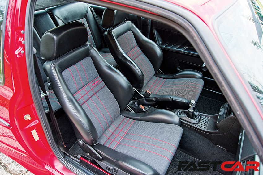 Any non-OE parts were carefully selected so as not to lose the character on this tuned VW Golf Mk2 Rallye. Gauges to monitor air/fuel ratio and boost pressure are vital in a G60, but the latter is a near-OE VDO item. And although the steering wheel is a MOMO item, its Volkswagen Motorsport horn push and gear knob don’t look out of place alongside the 32-year-old cassette player on top of the dashboard. When you’ve got a G60 ‘charger to listen to, what more do you need?