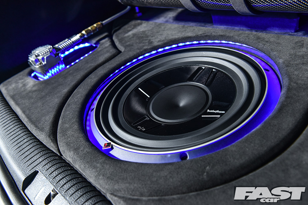 As this was no longer his daily driver, Danny reckoned he could now get away with getting a full boot build installed to really tie everything together, once again heading to Car Audio Security to mull this idea over with the lads there. “I actually drew up the design I had in my head on a piece of paper,” he explains – using a tactic that he often does in his day job to explain one of his ideas. “The guys totally exceeded all my expectations when replicating it in real life, though!” Comprising two large carbon fibre air tanks for the suspension system that’re finished with Alcantara covers, along with those chrome compressors and a Rockford Fosgate sub also proudly on display, the boot is now an extremely classy and restrained feast for the eyes – more than a match for the car’s sumptuous standard interior which features those sought-after ‘Wingback’ Recaros up front.