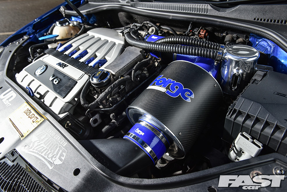 3.2-litre VR6 V6 engine; Forge Motorsport induction kit; full Milltek stainless steel exhaust system; Audi R8 oil cap; Porsche coolant cap; blue coil pack.