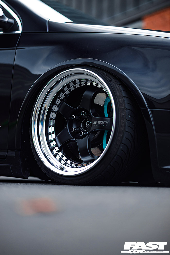 Sitting pretty in theory, for sure, but with this massive hurdle crested Liam found himself slapped in the face with the fresh problem of tyre sizes. After all, he was looking at a set of staggered fitment rims on an all-wheel-drive car; with the Haldex system you’ve only got an 8% margin front-to-rear, and anything beyond that will see the car throwing itself into neutral and refusing to drive as a self-preservation measure.