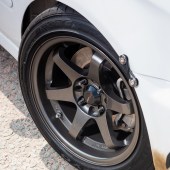 SUSPENSION: Fox racing coilovers, extended top-mounts, Skunk2 front camber arms, Function 7 rear lower control arms and brace, D2 rear camber arms, D2 rear toe arms, rear strut brace, geo setup