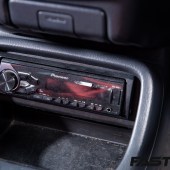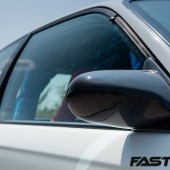 “I wanted a front exit exhaust,” he smiles. “Which meant fabricating my own 3-inch downpipe and connecting it to a KTuned muffler which pokes though an aperture on the driver’s side of the front bumper.”