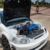 With the bay of the EK Honda Civic now gleaming white, it was ready to receive the monster of an engine that Scott had been craving.
