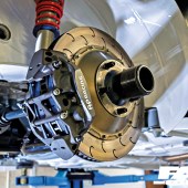 10×19” (front) and 12×19” (rear) HRE Vintage Series 501 three-piece centrelock wheels with 265/35 (front) and 325/30 Pirelli Trofeo R tyres, Hadik Suspension custom shocks with alloy housing, motorsport anti-roll bars, custom front spindles, aluminium/Chromoly front control arms, CNC’d Chromoly front subframe, E92 M3 rack and pinion steering and uniball joint, TRW Motorsport electric power steering pump, CNC Chromoly rear bearing housings, Chromoly rear control arms, adjustable camber/toe, AP Racing brake master cylinder and bias adjuster, ATEC hard line tube system, AP Racing GT3 six-piston calipers and 385mm racing discs (front), GT3 four-piston calipers and 355mm racing discs (rear), Endless brake pads
