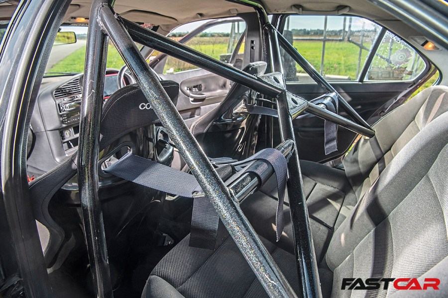 Everything on the chassis has been reinforced that can be, again, to make sure that with the power it’s got nothing breaks, as the car was only a little 316 before,” he adds, and that just makes sense. Of course, those BC coilovers are just the tip of the handling iceberg and beneath the bodywork, you will find adjustable upper and lower arms, Icefab toe correction brackets, MACS Engineering tubular lower arms, reinforced front and rear subframes and a tubed front end. An E46 purple tag steering rack makes for quicker direction changes, while the brakes comprise an uprated M3 front setup, E46 320d rears, and braided hoses all-round.