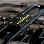 4951cc Coyote V8, Function Factory Performance custom turbo kit, Comp Turbo Technology 62/62 triple ball-bearing ceramic-coated turbos, ceramic-coated manifolds, custom intercooler, ported 2018 inlet manifold, ARP Oil/Ford Performance oil separator, custom Cobra Sport 3in Venom exhaust system, K&N cone filters, Modular Motorsport Racing (MMR) inlet manifold lockouts, billet chain guides, billet secondary tensioner bracket, billet primary chain tensioners and secondary chains, Coyote billet oil pump gear, Coyote crankshaft gear, ARP/MMR balancer bolt, ATI Super Damper serpentine series harmonic balancer, MagnaFlow 200-cell cats, Turbosmart external wastegates, Race Port Gen V blow-off valves and eBoost 2 boost controller, Injector Dynamics ID1050cc injectors, painted engine cover, expansion tank cover, fuse box cover, brake fluid cover and strut covers