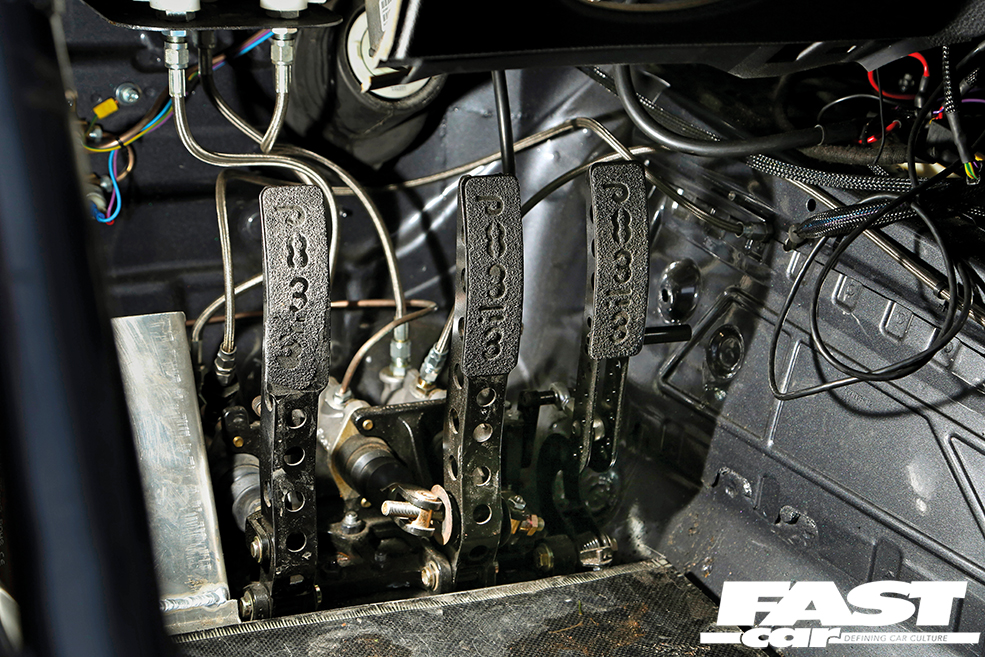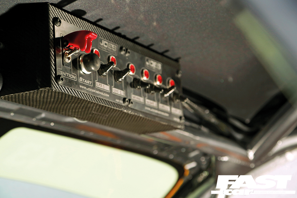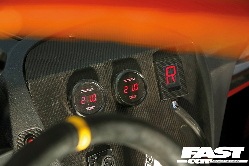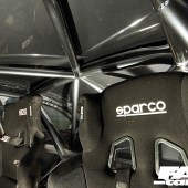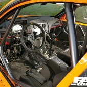 Full FIA-approved roll-cage, rear closeout, Sparco Ergo seats, Sparco five-point harnesses, carbon door cards, QSP steering wheel, Racepak data logger, dual Zeitronix digital wideband AFR gauges, digital gear indicator, Joes Racing switch panels, Wilwood pedals, RFS Performance CNC hydraulic handbrake