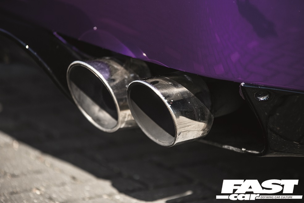 VQ35DE 3.5-litre V6, Knight Racer Stage 1 remap, decat, custom stainless exhaust system developed from R35 GT-R system – with GT-R quad tips, 6-speed manual gearbox