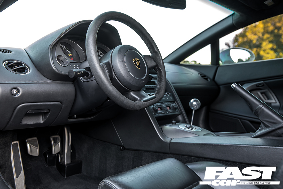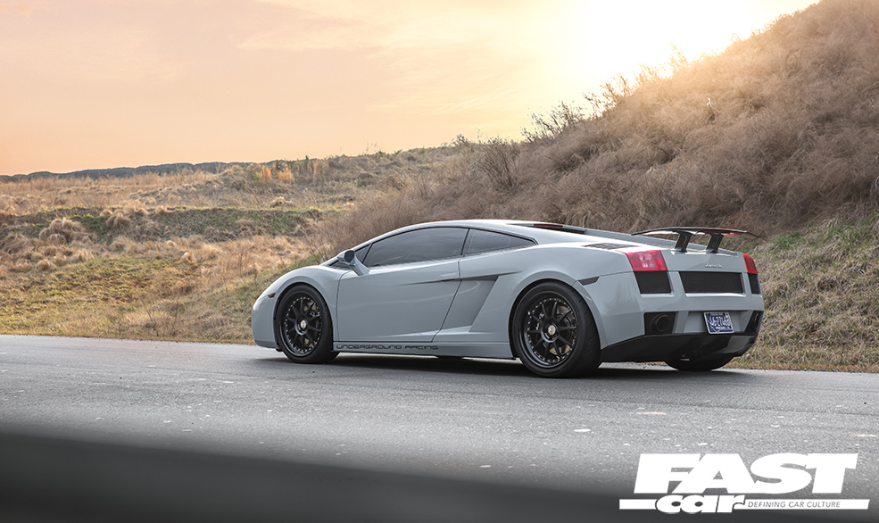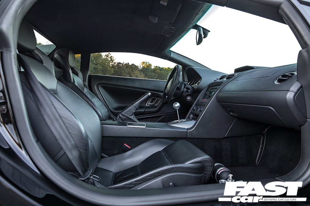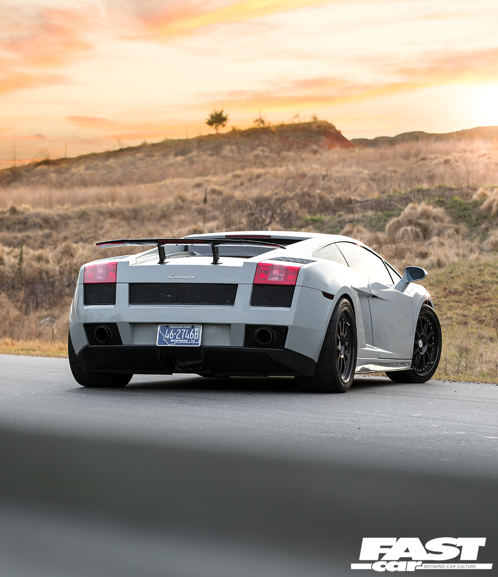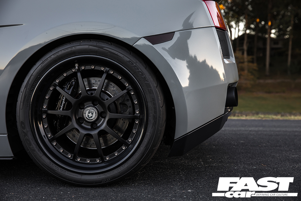 What surprises most Lambo aficionados about this car is the relative levels of stealth. OK, you could never describe any Lamborghini as a sleeper, they’re way too ostentatious for that, but to the untrained eye this appears to be nothing more extraordinary than a mainstream, factory-spec Gallardo. The fact that it’s painted in subtle Nardo Grey further adds to the under-the-radar mystique; a fashion-forward shade that fans affectionately know as ‘shiny primer’, it helps Moe to blend in with the traffic as much as is possible in such a machine. Indeed, there are only four clues that give away the simmering malevolence that resides beneath that engine lid: firstly, there’s the wheels. They’re HRE C103 forged three-piece split-rims, their 19-inch diameter chosen to offer the ideal mix of acceleration and top-end; HRE competition-spec wheels are incredibly light and strong, and Moe’s wrapped his in sticky Toyo R888R rubber. So that’s clue one. The second hint that all’s not quite factory is the Superleggera rear spoiler – although, to be fair, a lot of owners do that. The third? It’s those mighty tailpipes, which do have a tendency to spit huge blue flames when angered. And finally, above all, there’s the incredible noise this car makes, an aggressive crescendo of growls, rumbles, whooshing sounds and wastegate chatter. It sounds like an entire fairground has been squeezed inside the diminutive Sant’Agata sweetheart. It heralds chaos like a binary supernova.