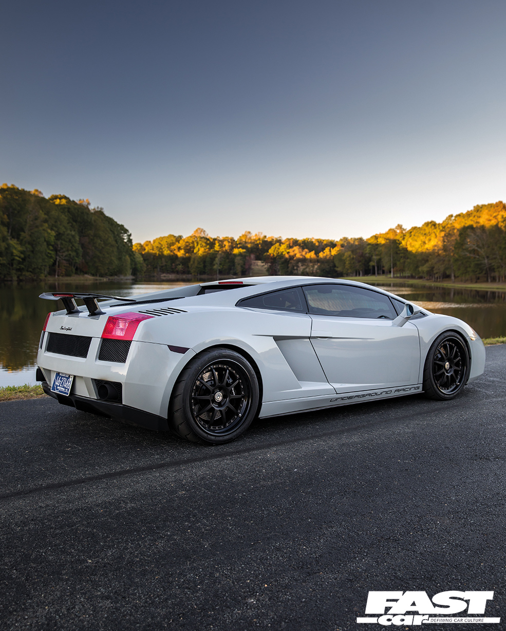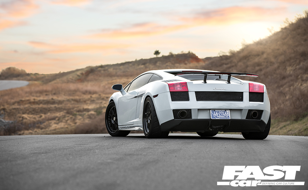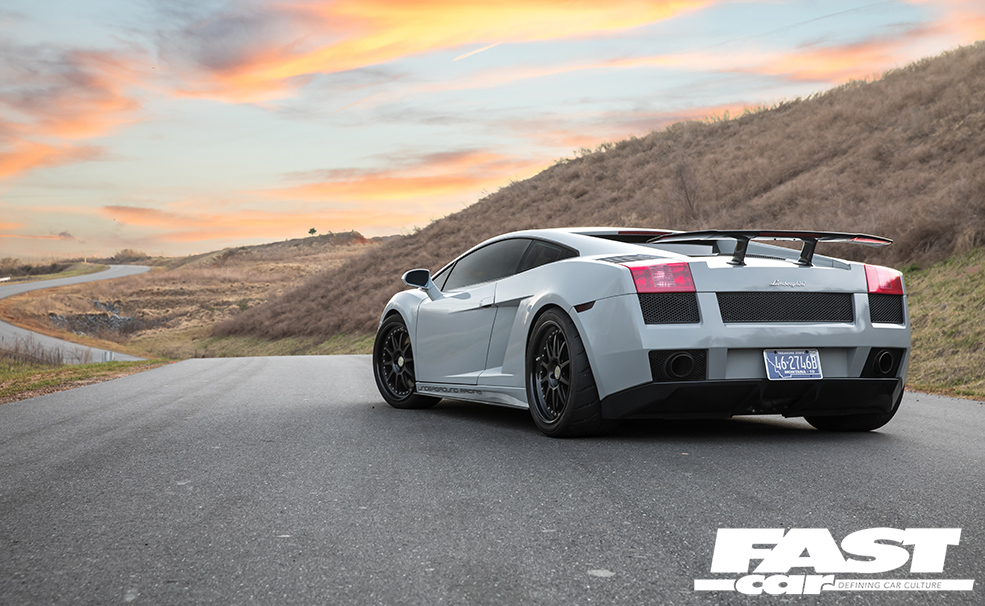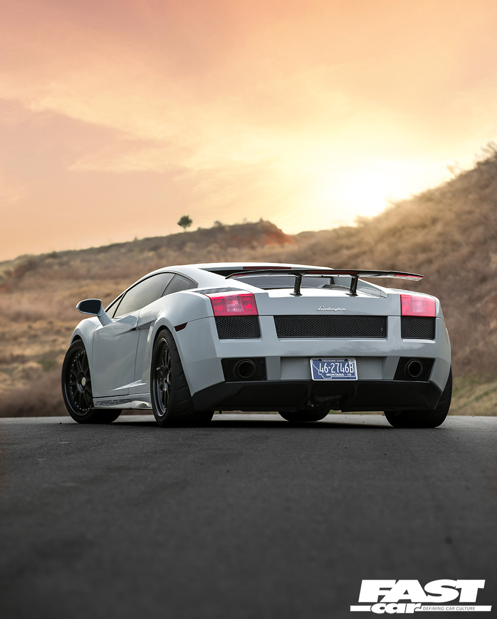 What surprises most Lambo aficionados about this car is the relative levels of stealth. OK, you could never describe any Lamborghini as a sleeper, they’re way too ostentatious for that, but to the untrained eye this appears to be nothing more extraordinary than a mainstream, factory-spec Gallardo. The fact that it’s painted in subtle Nardo Grey further adds to the under-the-radar mystique; a fashion-forward shade that fans affectionately know as ‘shiny primer’, it helps Moe to blend in with the traffic as much as is possible in such a machine. Indeed, there are only four clues that give away the simmering malevolence that resides beneath that engine lid: firstly, there’s the wheels. They’re HRE C103 forged three-piece split-rims, their 19-inch diameter chosen to offer the ideal mix of acceleration and top-end; HRE competition-spec wheels are incredibly light and strong, and Moe’s wrapped his in sticky Toyo R888R rubber. So that’s clue one. The second hint that all’s not quite factory is the Superleggera rear spoiler – although, to be fair, a lot of owners do that. The third? It’s those mighty tailpipes, which do have a tendency to spit huge blue flames when angered. And finally, above all, there’s the incredible noise this car makes, an aggressive crescendo of growls, rumbles, whooshing sounds and wastegate chatter. It sounds like an entire fairground has been squeezed inside the diminutive Sant’Agata sweetheart. It heralds chaos like a binary supernova.