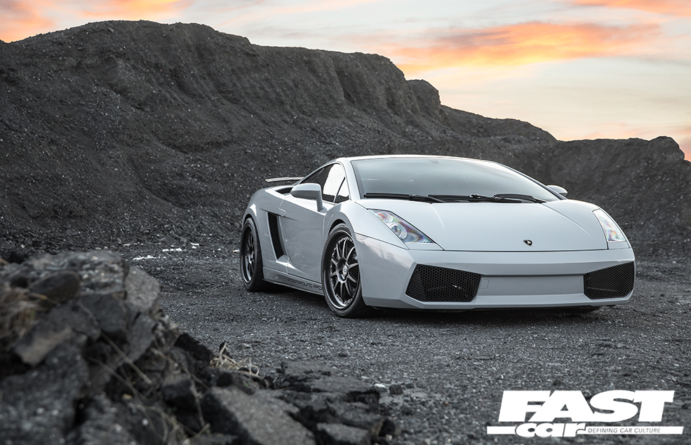 As a base for a project, the bone-stock Gallardo is already a pretty brutal and savage thing. It’s the car that really pushed Lamborghini into the volume-selling mainstream. Production ran from 2003-2013 and they shifted over 14,000 units – unprecedented numbers for a company that always belligerently walked its own path and had to accept the financial setbacks that came with this uncompromising quest for uniqueness. The first-generation Gallardo, like the one we have before Mike’s lens today, came equipped with a 5.0-litre V10 producing a nice round 500bhp; it would run 0-62mph in 4.2 seconds straight out of the box and go on to 196mph. Standing quarter-mile? An unstressed 12 seconds. Some people may call it the ‘baby Lambo’, but don’t go thinking it’s not thoroughly grown-up.