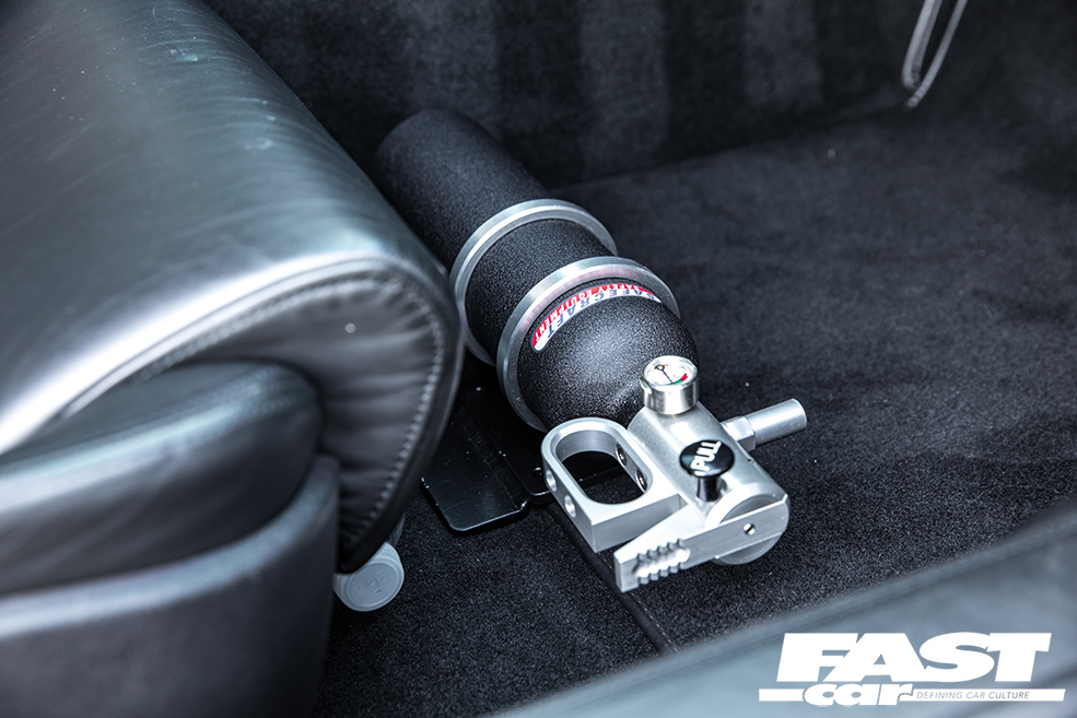 The fuelling is frankly massive, and it’s all overseen by AEM engine management to keep everything safe as well as utterly ballistic. The ice water reservoir is a neat touch, allowing Moe to significantly reduce charge temperatures by pouring in a bunch of ice before a high-speed run. And perhaps the most notable feature of this car, aside from the near-unbelievable horsepower, is the fact that it’s still running a six-speed manual gearbox. There’s no e-Gear chicanery or motorsport sequentials here, simply a billet gearset inside the standard ’box. Now, this car’s running 2,300bhp, a figure you may need to absorb for a moment, with potential for up to 2,500bhp depending on setup – there’s much about the engine spec that Moe would prefer to keep secret. That’s a lot of grunt to entrust to your wrist and your left ankle.