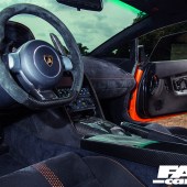 On the transmission side of things, the Superleggera was fitted with the E-gear option, which was then upgraded with a ceramic clutch and flywheel, a new pressure plate and billet final drive gears. The top speed is approximately 225mph, with this car completing the standing mile at 218mph. The tuning is completed through an AEM engine management system with a custom wiring housing but runs the regular transmission control unit.