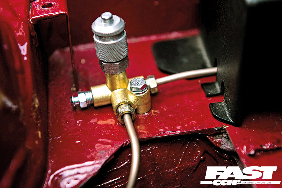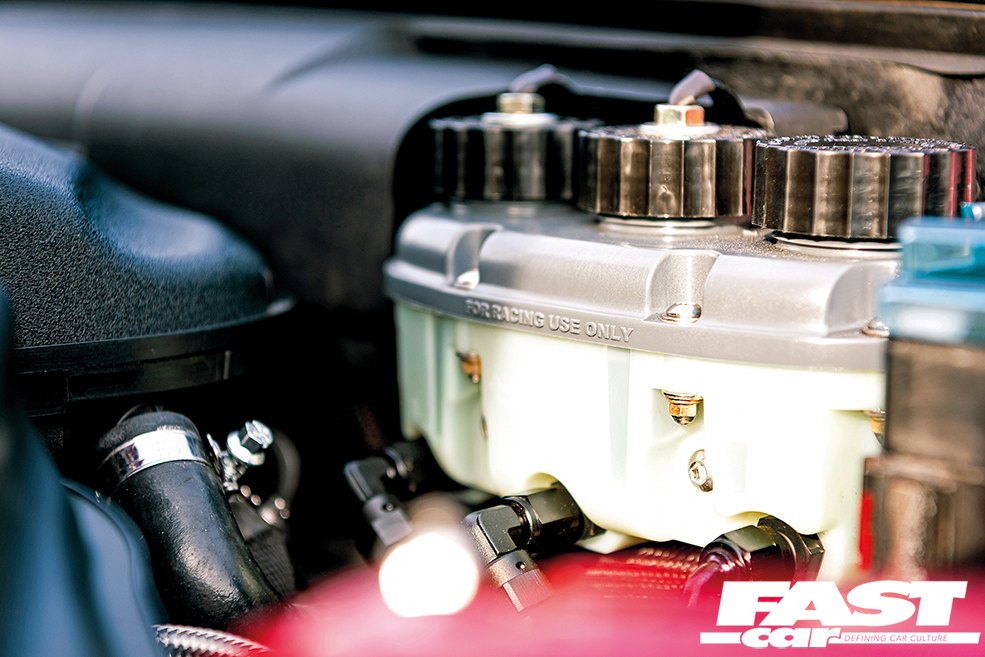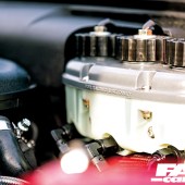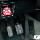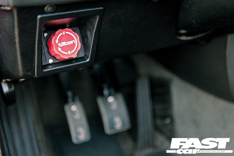 The chassis has obviously undergone some serious upgrades to ensure that it can cope with all the power and torque from that mighty V10, both ensuring that the car can effectively deploy it all to the tarmac as well being fun to drive. “The front suspension has been rebuilt last winter with rebuilt coilovers, poly bushes, engine mounts and a front subframe fabricated by me,” says Keith and this little lot has combined to deliver sharp and precise handling that makes this M3 even more of a blast to drive than the stock car, and it ensures the chassis is tight and more than capable of dealing with that monster power output. Big power also demands big brakes because, light as the E30 may be, with over 500hp on tap you’re going to be arriving at corners that much faster and so they’re absolutely an essential part of the package, and this M3 boasts some serious stopping power. “The brakes have been through a few changes,” Keith tells us, “last year I ripped out my previous efforts and installed a Tilton pedal box, E46 M3 325mm front discs with refurbished E31 front four-pot Brembos, while the rear has 296mm vented discs with Porsche four-pot Brembos. I’ve also added a bias adjuster and it’s fitted where the headlight adjuster switch would normally sit,” he says and that is an impressively comprehensive and suitably substantial setup. The four-pot calipers front and rear deliver serious stopping power whenever Keith requires it, and they also happen to look seriously sexy and the red calipers match the paintwork perfectly.