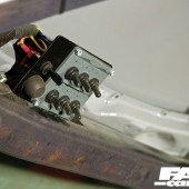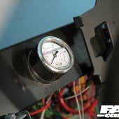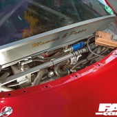 With their drivetrain sorted, the brothers could now turn their attention to the rest of their monster build, starting with finishing off the interior and completing that roll-cage that the previous owner had kindly started, before adding the rest of their chosen interior components. There are a pair of Sparco buckets so that the boys can enjoy their drift machine together, both equipped with QSP six-point harnesses, a Suvi Performance hydraulic handbrake, Coolerworx shifter, a QSP suede-rimmed steering wheel, an oil pressure gauge mounted directly in front of the driver, and additional bits like the overhead switch panel. With this being a pro drift build the interior has been stripped of all unnecessary items, with only the essentials retained and mandatory equipment fitted, and it’s exactly as hardcore and stripped-out as you’d expect, but there’s still a lot of work that has gone into the cabin and it’s been finished to a high standard.