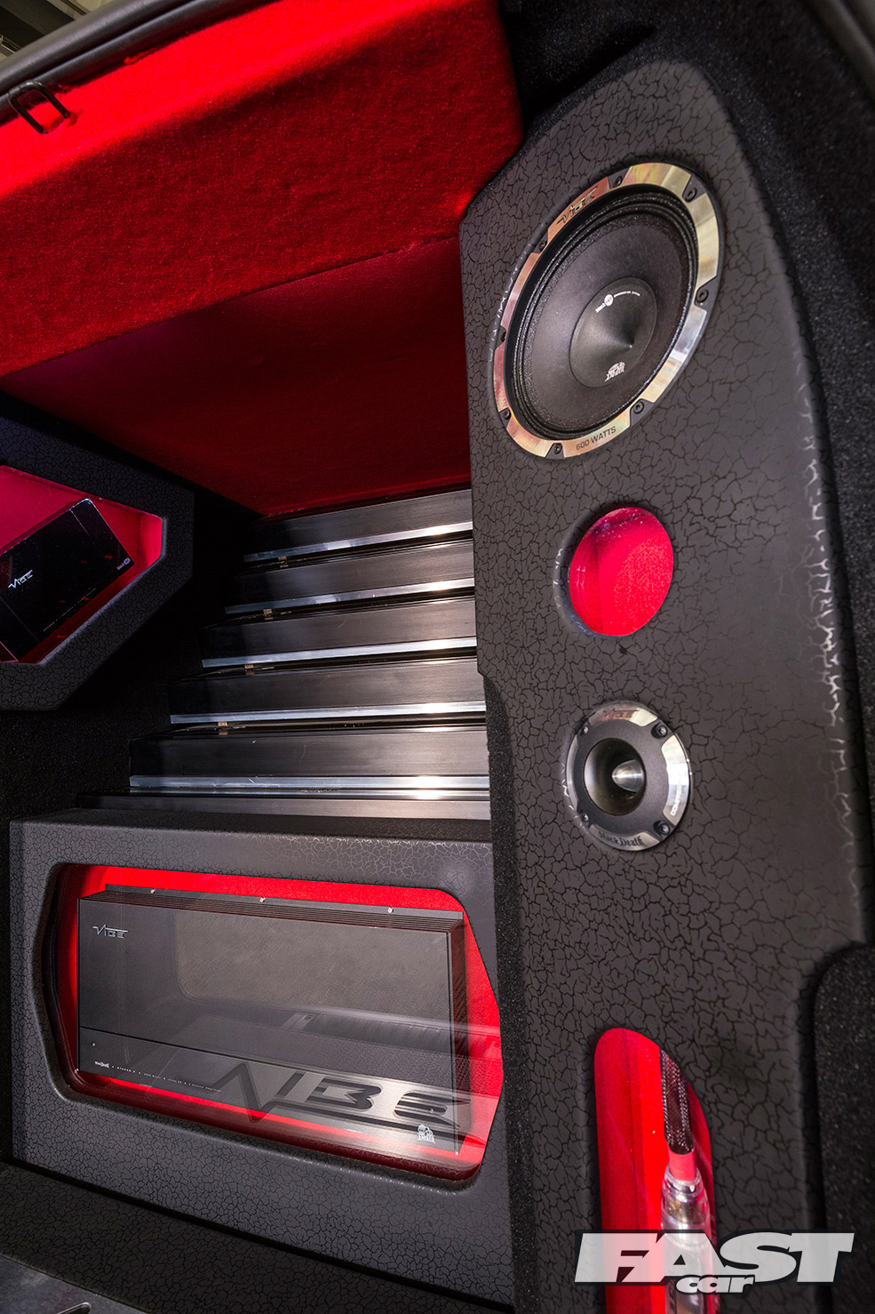 Come to think of it, the whole installation is cosmetically flawless from the custom door cards to the rear amp-rack, an unusual quality in any vehicle with such hardcore intentions. Still, as the spec confirms, it’s certainly got the minerals to back it up too. And in competition that’s what matters most.