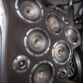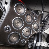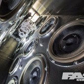 3x BlackDeath Pro 4 Tweeters per door; side housing 2x BlackDeath Stereo 2 Amplifiers, 1x BlackAir Stereo 4; rear build, 6x BlackDeath Bass 2 Reaper amplifiers, 12x BlackDeath Carbon SPL 15-inch Bubonic subs in custom bandpass enclosure; 2x BlackDeath Pro 8 Midwoofers; 2x BlackDeath Pro 4 Tweeters; 28x kinetic batteries.