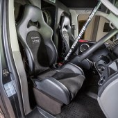 Cobra Misano leather and Alcantara front seats with custom embroidery; centre seat delete; ‘stripper pole’ roof brace; MDF lined headlining; Anti-VIBE sound deadening.