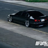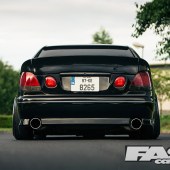 Cleaning it up, as in a full respray, that is, along with a refurb of those deep, wide rims. Then it was onto the ride height. The Aristo was already looking sweet, lowered on BC coilovers all round, but to make a real impact Paddy went with air bags. John at Peden Conceptz was enlisted to fit