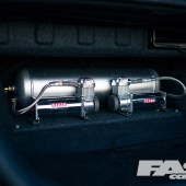 a full system, which includes an air-ride four-way competition setup with Air Performance V2 management system with twin compressors. Now he can drop the sump to the floor at shows yet still make it over speed bumps in one piece, as it’s fully adjustable from the cabin.