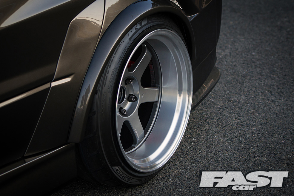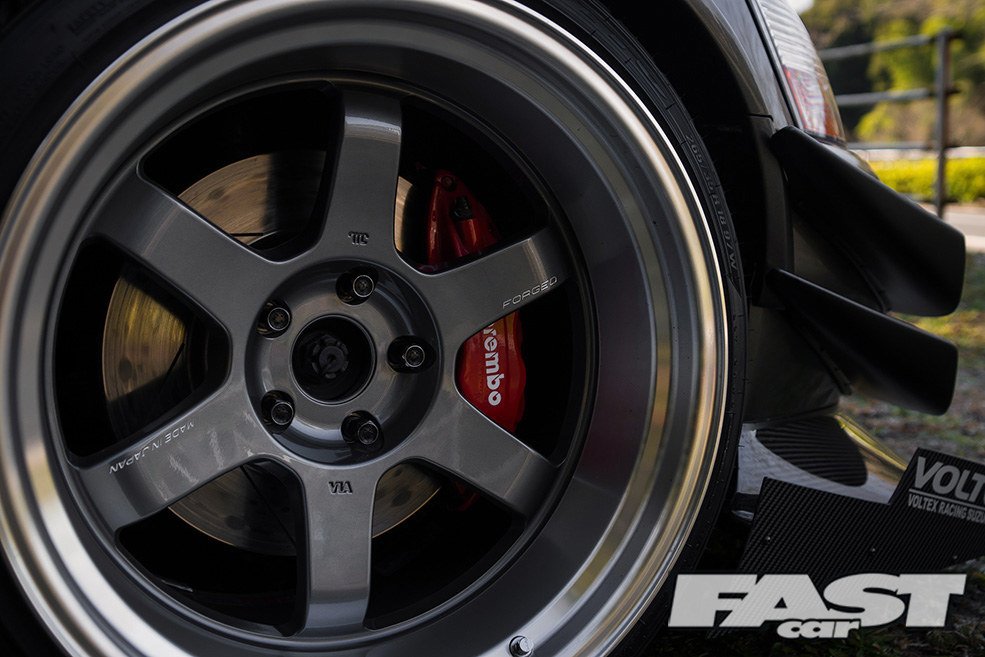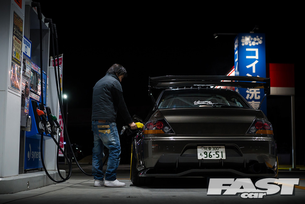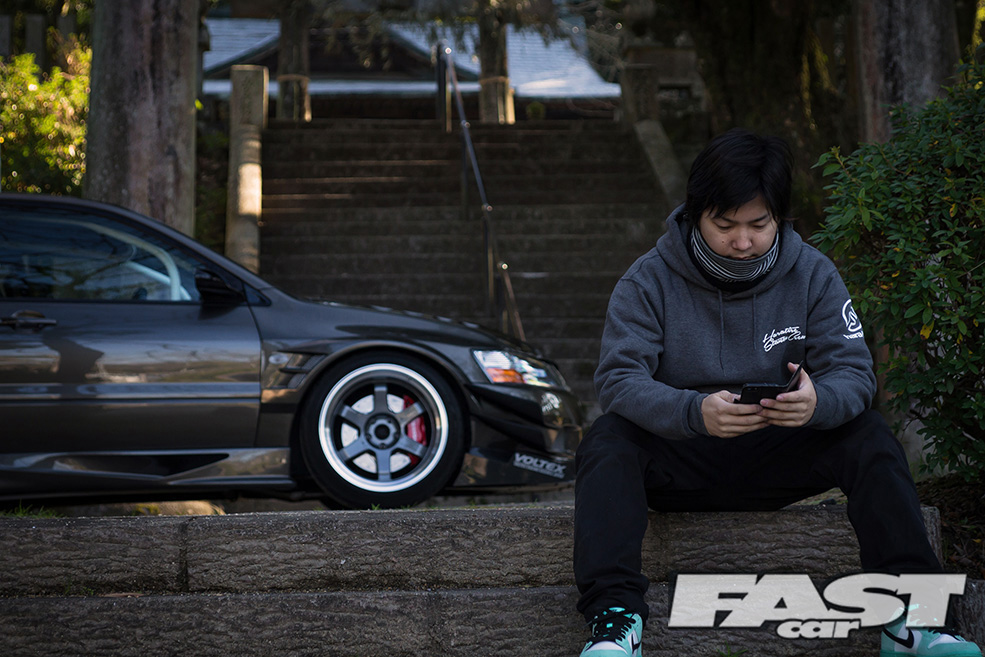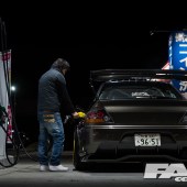 The same day I arrived to Fukuoka to meet Takeru-San, his CT9A was undergoing a slight modification in the wheel department. Takeru-San was looking for something a little different than his previous set of Work Meister M1s. Trying to keep up with the JDM trend 18-inch Rays TE37 were an obvious choice – however the specs he went with are anything but. 12J with an offset of -20 have to be the biggest TE37 I have ever seen. Now, Takeru-San has the hard-parking styling to backup the track performance.