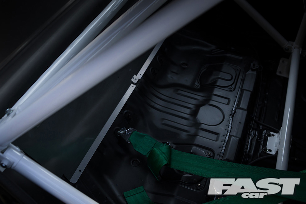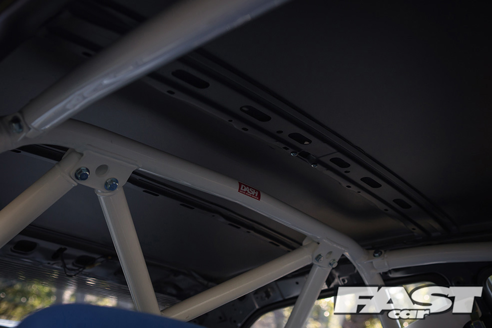 Okuyama DASH 16-point rollcage; Okuyama lower arm bar; Key!s Racing steering wheel and shifter; Recaro Spg-n seats; Defi turbo, water, oil gauges.