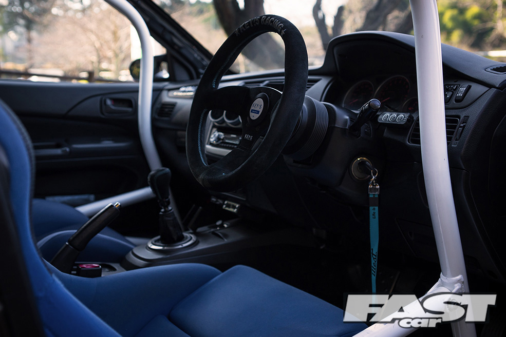 With the car sorted out, it was time to let the modification bug go wild. Again, thanks to the inspiration of WRC, Takeru-San was looking to build something more of a track or Time Attack car than a hard parker. Getting more power out of the 2.0L 4G63T I4 was top priority. Basic upgrades such as larger, 650cc Arms injectors, Tomei 255L fuel pump and HKS EVC controller are great. But he wanted a lot more power. The old turbo was ripped out and a brand new Tomei M7960 turbo took its place. A conservative 400hp to all four wheels is the fruits of his hard labour. “I could easily get more power out of the engine,” he says. “However I don’t want to stress it too much as I haven’t upgraded the engine’s internals yet. The current power is more than enough for me right now.”