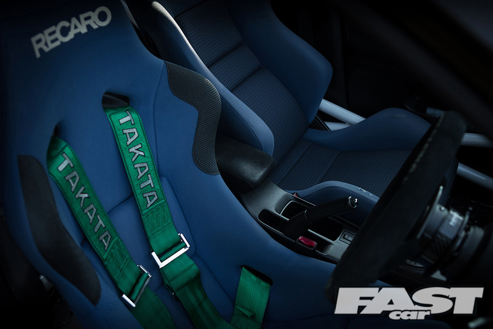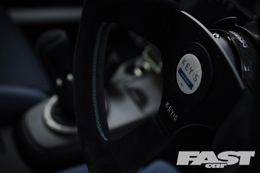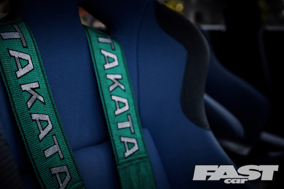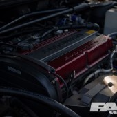 The interior is all business too, with the rear seats and most of the interior being stripped out to save weight, and a 16-point DASH roll cage added. Key’s Steering wheel help communicate the road conditions to Takeru-San, while an array of Defi gauges output important information such as water and oil temperatures, and boost. Recaro Spg-n seats keep both driver and passenger firmly in place.