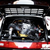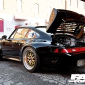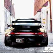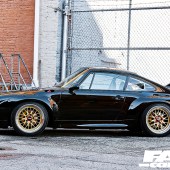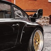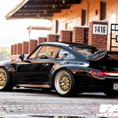 Painted jet black with RSR body kit, GT2 wing, Turbo front bumper and NACA duct side windows