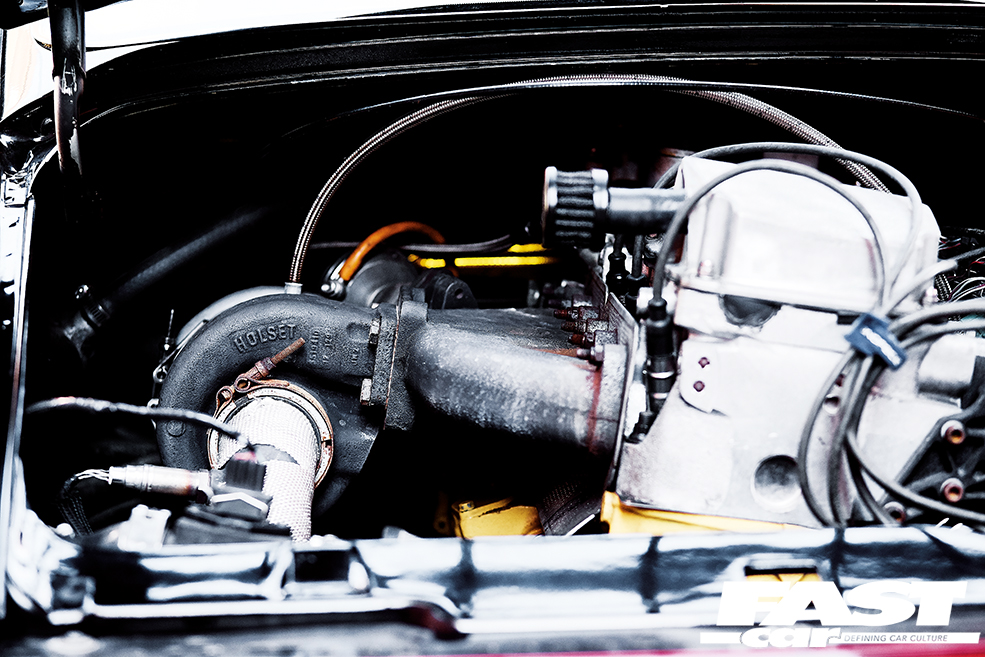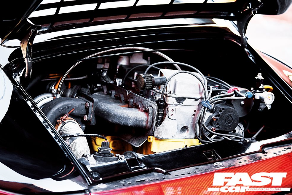 The tears, fears and general controversy and consternation has always been about what’s under those pristine panels though, it’s surprising how much hue and cry half a dozen cylinders can create if you just change the cooling source and configuration, bend the block a touch and throw in a little water and people lose their minds! “Installing a turbo VR6 was always the goal,” explained Brad, “I probably could have found a period correct flat six to throw in there, but where’s the challenge in that?” Tracking down a narrow angle six to stuff in the boot was certainly easier… and a fair bit cheaper than finding and funding a boxer to go back there. “I found a Mk3 Jetta for sale for $500 in a another city, recalled Brad, “I called a friend to go look at it, and after doing a couple of burnouts in it he reckoned it was stout enough for the project. I sent the money and gathered the engine later.” Though capable of roasting the radials the twelve valve six showed some signs of wear and rebuilding the lump seemed like wise insurance, the future promised healthy helpings of turbo boost and horsepower numbers north of 400 were planned. Getting the VR to fit in the back of the Porsche and actually work proved to be just as much fun as you might imagine. Acquiring a Porsche gearbox and mating it up to the block was the easy bit…they make a kit for that, but making all the accessories play along and finding a way to cool the motor presented a whole heap of challenges. “There was probably four or five different set ups I tried to get the cooling system to work properly,” lamented Brad, “but they all kept overheating. Running the coolant hoses through the body channels meant I had high and low spots so it created air pockets. I finally got it to work with a bleeder line off the head rerouted to the coolant pipe. It created the highest point I was missing.” Almost every part had to modified or custom made to fit in the confines of the small, shallow engine bay. Though more often found strapped to heavy duty diesel engines, a quick spooling Holset turbo unit was introduced to the six via a custom manifold, the pipe bender and welder also came out again to create a custom exhaust, “space was very tight and I initially tried a straight through exhaust,” revealed Brad, “but the volume even at idle was just not going to fly, so I was kinda forced to add a resonator.” Despite pulling the motor more than a dozen times and seemingly having to redo every single part more than a few times, a few months of sleepless nights and hard labour saw the combo fitted and fired up. “There were more than a few teething problems and countless shakedown runs,” explained Brad, “but I think I’ve got it to a point where its driving reliably and I can actually enjoy it.” A major concern was always that the VR6 would sit much higher than the boxer motor which would play havoc with the handling, the lower centre of gravity of the original engine has always been touted as a canyon carving secret. “That was something I thought about, but in practice the dynamics of the car worked out well, I think the fact that the VR6 is roughly 90lbs lighter than the flat six really helped the balance and handling,” Brad told us.