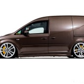 Hybrid MK7.5 Golf GTI front bumper with Genuine Oettinger lower front spoiler and splitter and Genuine LED foglights, Touran front grill, VW Carbon rear bumper protector, Custom Touran/Caddy wing mirrors with puddle lights and dynamic indicators, Edition 30 Side mouldings, Edition 35 style side skirts, Caddy Alltrack lower door trims, smoothed and painted, modified Vanstyle MK4 Caddy arch kit, rear spoiler, painted number plate light handle, side rail cover (with correct rail), black rear VW Badge with painted backing, custom EM Tuning bi-Xenon headlights with twin honeycomb etched projectors, MK4 Caddy side repeaters, MK4 Caddy rear light units with LHD version fit to driver’s side, wind deflectors, painted external B-post trims, MK4 Caddy (16” wheel), rear-wheel arch liners (with spray flap), custom made mud flaps