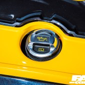 Initially Kev had Alex at AKS Tuning install Revo software, which was soon followed by a matching induction kit, LOBA HPFP, Airtec front-mount, 3” turbo-back exhaust and a Helix clutch for good measure. The car’s now good for around 370bhp, which meant a big-brake conversion was another sensible upgrade. It was around this stage the single piece wheels made way for a set of 8.5×20” MB Design VR1.3 split-rims fitted using a Tpi stud and nut conversion. “I was able to fit 8.5s all round and still keep the car low by fitting a set of the wider SRS Tec wings,” Kev told us. That wasn’t before he cut and widen the wings a further 10mm to get the desired look and fit he was after. Thankfully the whopping wheels (laced in ultra-low profile 225/30 rubber) meant there was plenty of room for the monster stoppers Kev had in mind. The car now runs Audi R8 calipers with 365mm RSQ3 discs up front and R32 rear calipers with 356mm discs out back. The calipers were painted Lambo yellow, which is a theme that continued under the bonnet, too, with the TT RS cover and various other parts colour coded.