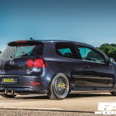 Full respray in Balck Magic pearl, SRS Tec wide front wings widened another 10mm, debadged grille, all grilles and wipers painted body colour, Team Heko wind deflectors, bonnet smoothed to lose badge cut out, candy red rear light clusters, smoothed front bumper, R32 rear bumper, carbon mirrors, carbon/body colour rear badge, carbon Pirelli Edition show plates, Golf R roof aerial
