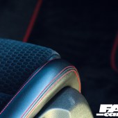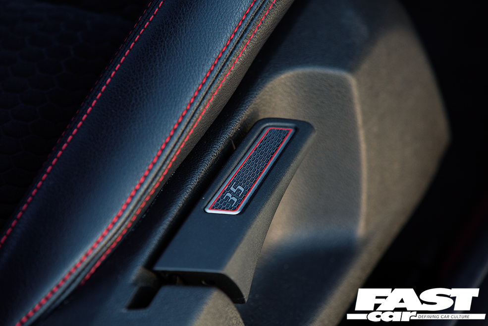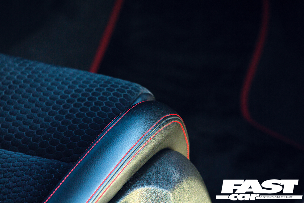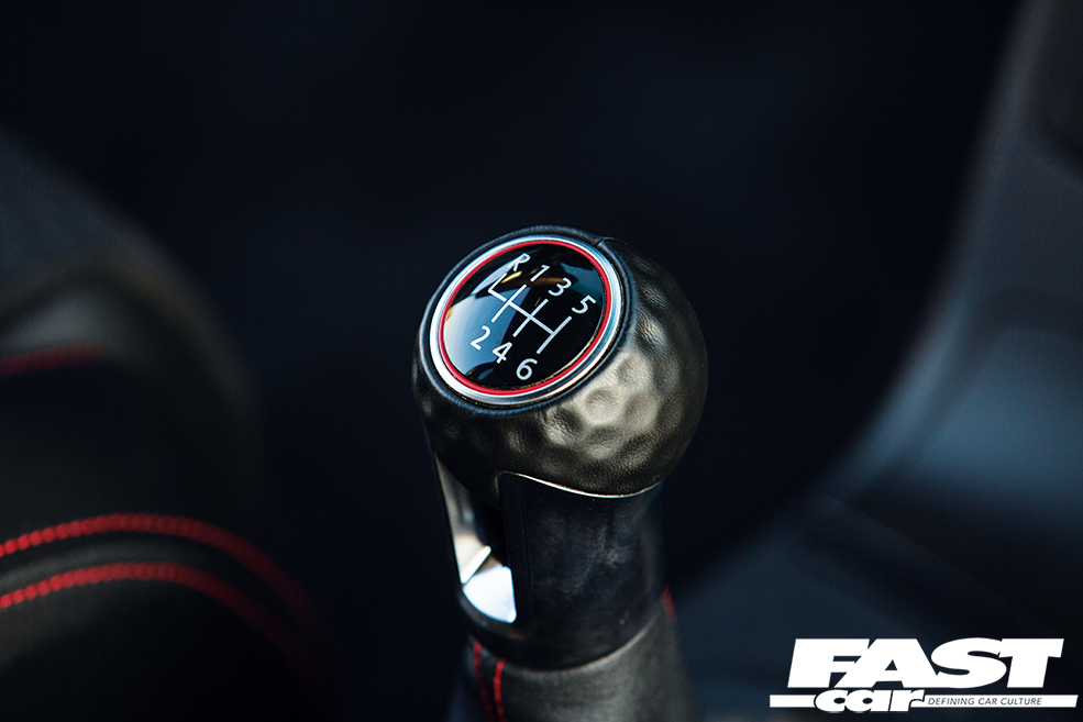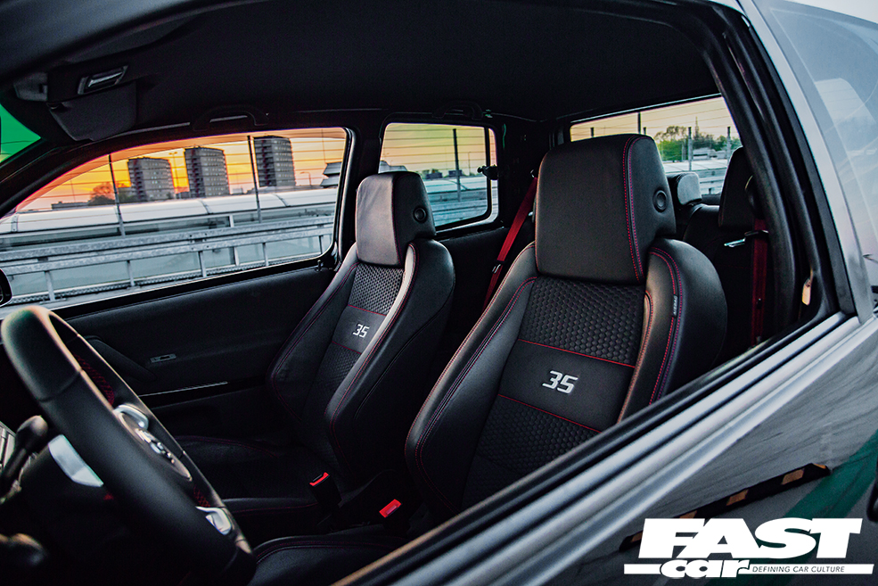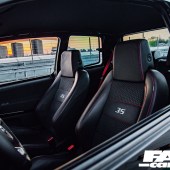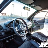 Mk6 Golf GTI Edition 35 leather/Alcantara interior (with retro-fitted heater function), Polo 6C GTI steering wheel, Polo 9N GTI handbrake gaiter, Mk7 Golf GTI gear knob, Passat W8 ambient light conversion, 320km/h speedo, digital monitoring system for oil temperature/oil pressure/exhaust temperature