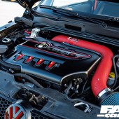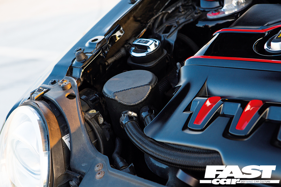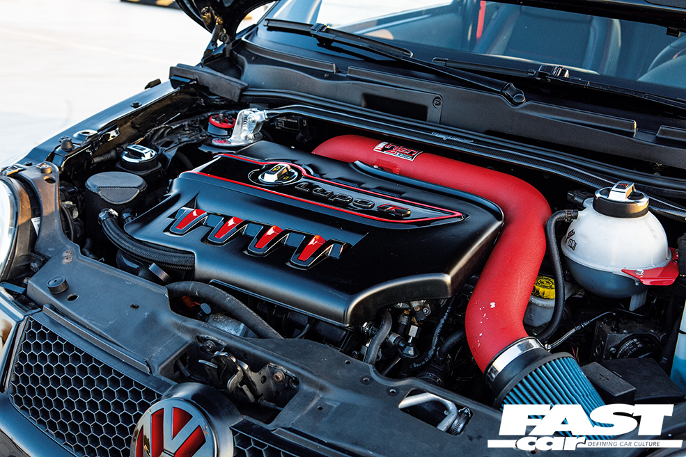 2.0-litre TSI engine conversion (BWJ-code with K04 turbo from SEAT Leon Cupra R), Injen cold air intake, custom 70mm stainless steel turbo-back exhaust system, Forge Motorsport coolant hoses throughout, Forge Motorsport oil catch can, ECS Motorsport throttle pipe, custom ‘Lupo R’-adorned Audi TTS engine cover, Audi R8 coil pack and oil/coolant/power steering caps, 02Q six-speed manual gearbox (from Mk6 GTI) with custom longer gearing, Quaife limited-slip differential, uprated shifter bushings