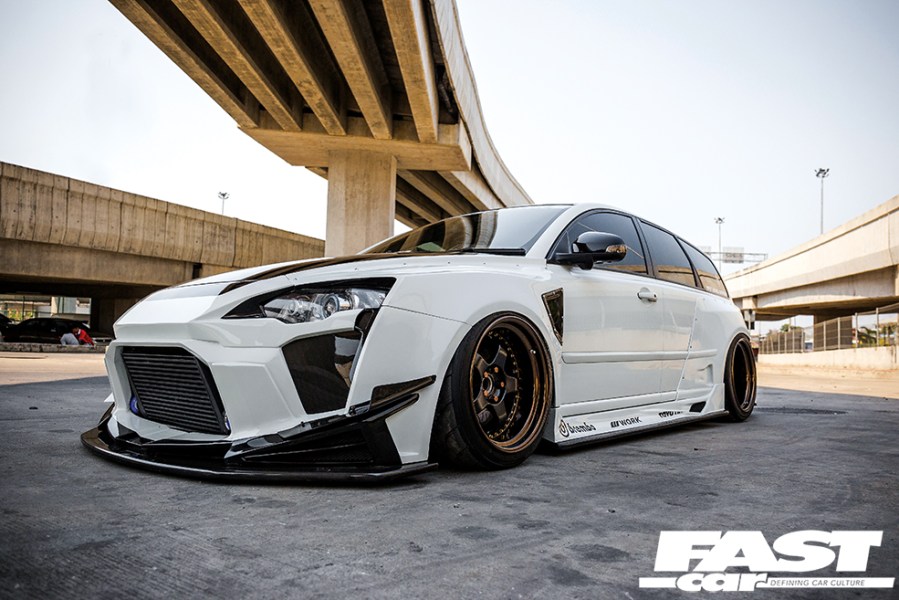 You’ve probably heard that name once or twice. This Bangkok chop-shop is always busy hand-crafting unique builds, taking inspiration from the extreme bodykits of the 1990s and 2000s, fusing it with the contemporary widebody craze, and distilling it into a look that’s distinctly modern Thai. And while many bodyshops may look at you a bit funny if you take them a Volvo estate and ask them to make it look like a supercar, this is all just another day in the life of Garage Unique. The merry band of Asian provocateurs set about the makeover with gusto, hand-crafting a full custom front end to mimic the jutting aggression of the Hypersport, a move which totally reconfigures the shape to startling effect. It’s all beautifully crafted for a perfect fit, with extensive use of carbon fibre, and – as you’ve probably spotted – it’s not just about the nose job. Garage Unique also custom-made carbon sideskirts, flowing into the imposing wide arches at either end, while the tail enjoys a boisterously massive diffuser and, most early-2000s-ish of all, that frankly eye-watering roof spoiler. Have you ever seen anything like it? It’s wonderfully deranged, harnessing the spirit of the Lykan and taking it to strange new places.