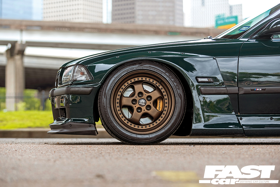 This is a decision which fascinated Houston-based BMW superfan Alexander Jackson (aka AJ) (@bimerdude ), and it’s something he’s paid homage to here with his own M3 build. You see, he spent his youth watching E36 Touring Cars racing on his TV screen; “I grew up watching the DTM, seeing the M3s wiping the floor with the Mercedes 190Es,” he explains – and what better way to pay tribute to those memories than to paint his car in British Racing Green, a colour which neatly draws together the threads of race cars and homologation specials, while also being nerdy enough to appeal to true enthusiasts? This colour, of course, was never officially offered in the US market, so it serves as a cunning Easter egg for true BMW aficionados.