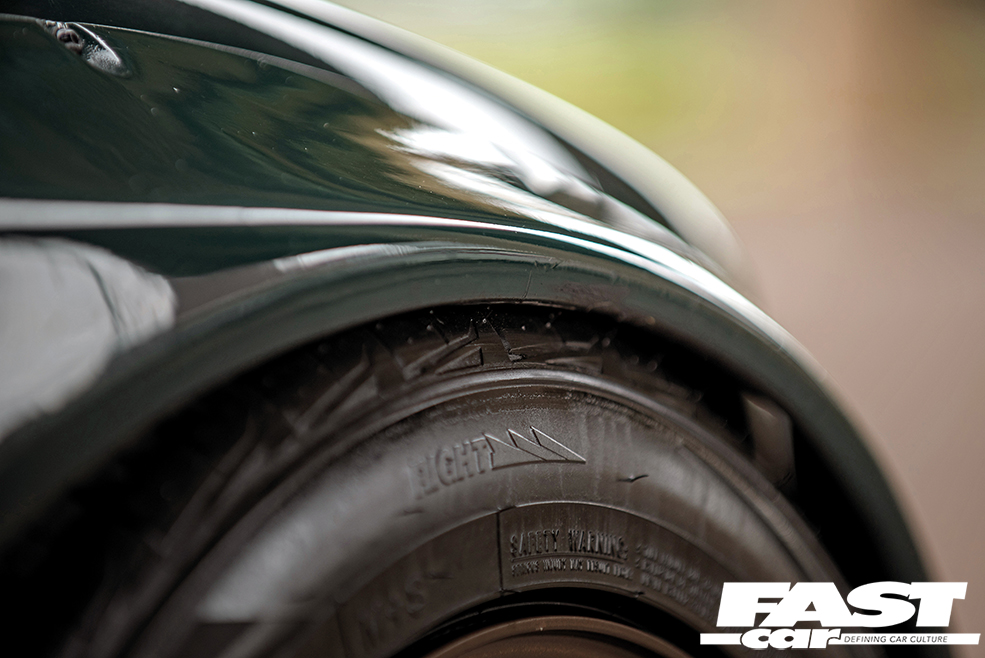 As he was busy stalking through the spec list like a ruthless sniper, the chassis mods were the next target in AJ’s sights. The ageing suspension was unceremoniously ripped out and replaced by a bespoke set of CX Racing coilovers. “These have custom-valved dampers from BC Racing, along with Swift springs to ensure the suspension remains planted,” he explains. “I also fitted custom monoball tie rod ends, Whiteline front control arm bushes, Powerflex rear subframe bushes and diff mounts, as well as solid monoball trailing arm bushes and differential bolt bracing from Garagistic.” The brakes are pretty fancy too, being a Brembo BBK from a 996-generation Porsche 911. With all of this belt-and-braces stuff taken care of, AJ then set his sights a little higher. Or, more specifically, wider.