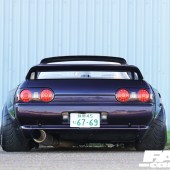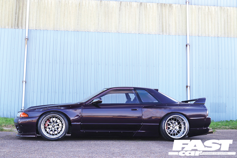 So, job done then? It might have seemed that way; a lifelong keenness for an R32 had been satisfied by a visually perfected example with a big-power heart. No more worlds to conquer? Ah, there’s always something more to do… and it turned out that the sniff of a set of supremely wide wheels led Jake to have a dramatic rethink about the Skyline’s aesthetic approach.