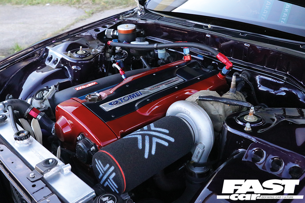 “When I bought the car it was about four different colours, from different panels being swapped onto it,” he continues. “So a month after buying it we set about fitting rear overfenders, fabricating wider metal front wings, and painting the whole thing one colour – which back then was its original TH1 Midnight Blue. I used the car like that over the summer and loved it. Then over the course of 2018 I slowly bought parts to do some basic power bits to the RB20 in the car, before deciding instead to just buy a forged RB25 from a friend… and things escalated from there! I ended up buying all of the power parts necessary to get a safe 5-600bhp.”