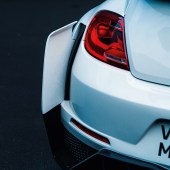 Resprayed in VW Motorsport White, bespoke bodykit based on the Gran Turismo Beetle produced in association with Prior Design, multipiece adjustable rear wing, graphics package inspired by Gran Turismo Beetle including ‘53’ Herbie racing numbers, LED yellow foglights, heatshields on doors next to ‘caution hot surface’ warning signs