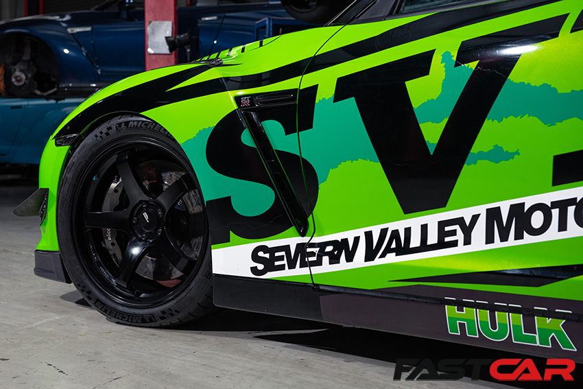 ‘We’ve come a long way from our humble beginnings, 30 years ago, as a one-man tuning firm based out of a wooden shed,’ laughs Kevan Kemp, Severn Valley Motorsport’s bossman and the owner of the retina-searing GT-R you see before you. ‘Now we have a 25,000sq ft premises which can hold over 100 cars and includes 42 ramps dedicated to both MoT testing and the tuning of high performance vehicles – the vast majority of those being R35 GT-Rs.’