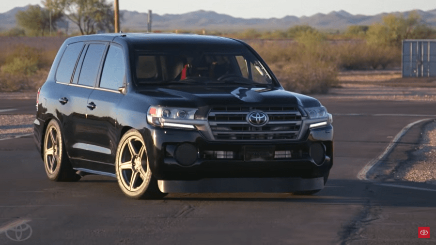 Step forward, the Toyota Land Speed Cruiser. In a project by the clandestine skunkworks division of Toyota USA, a fresh new Land Cruiser was plucked from the production line and torn to bits. They then stuffed in a huge pair of Garrett turbos, kitted out the 5.7-litre V8 with forged internals, substantially lowered the body over the frame, and stuck a roll cage in the stripped cabin. It rolls on Fox shocks with Eibach springs over 20” MOMO/TRD wheels. Yep, and it’s got 2,000bhp – which pushes the unlikely brick beyond 230mph. See it in action here.