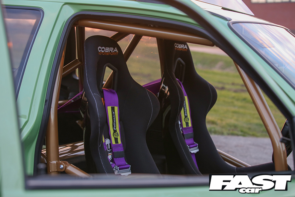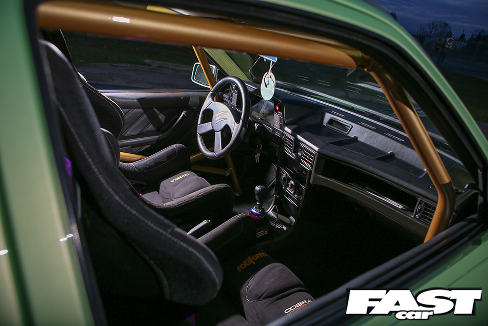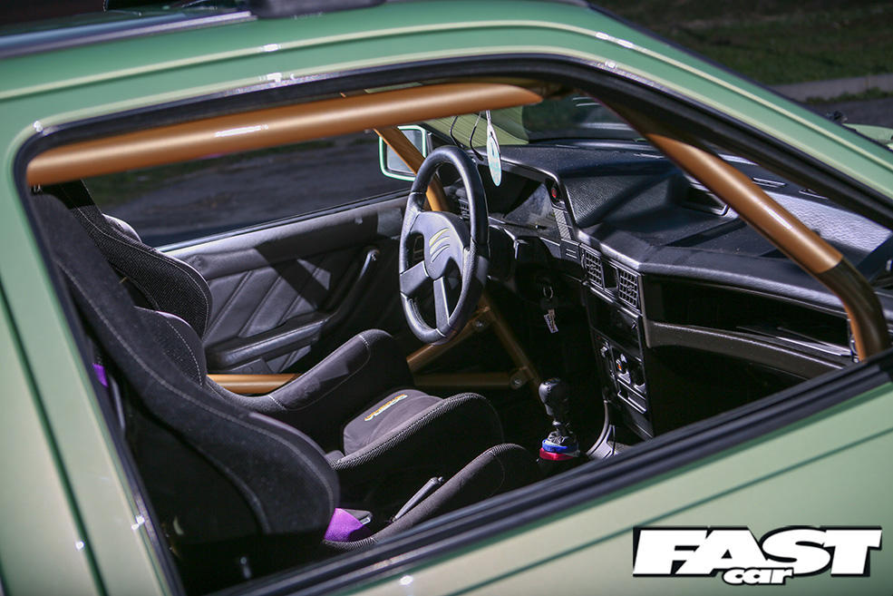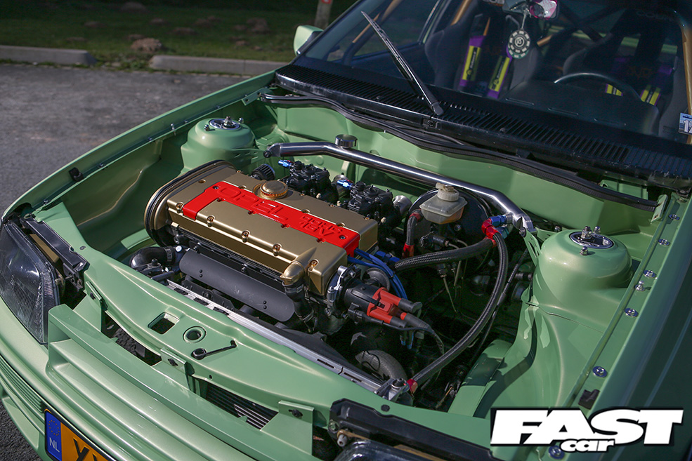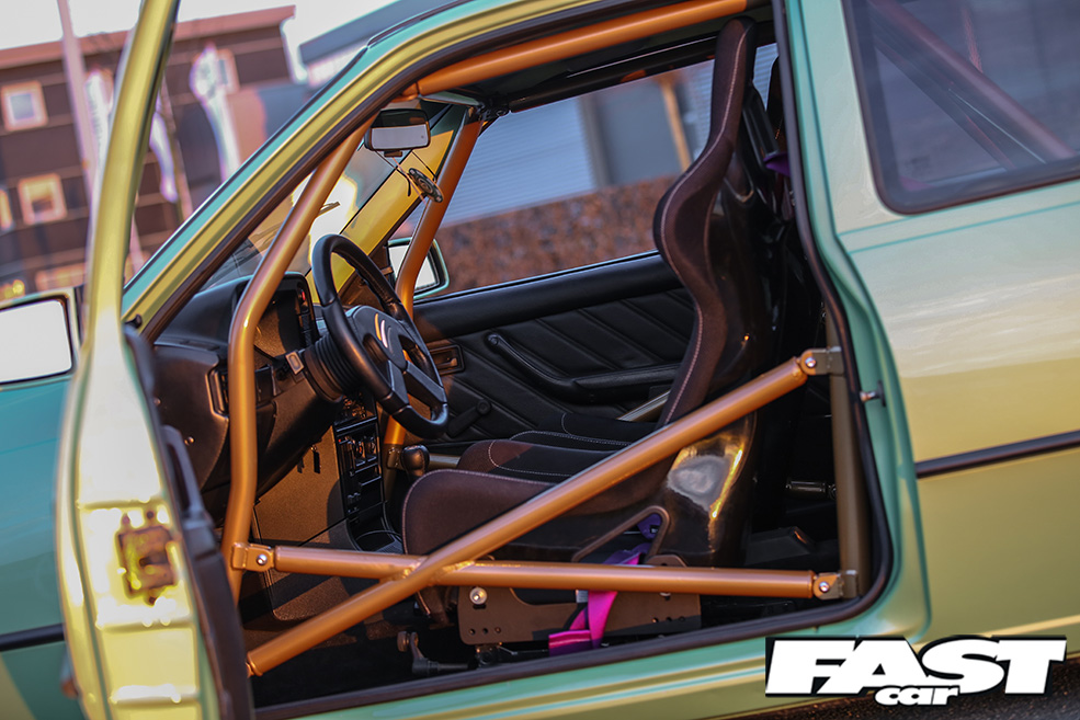 The engine is a 2.0-litre XE, as you’d find in a GSi/GTE, but here it’s been converted to run on twin Weber carbs, which sounds utterly sublime – particularly combined with Remco’s own home-brewed stainless exhaust system. It nestles jewel-like in a fully shaved bay, the top mounts raised and the fluid reservoirs and battery relocated.