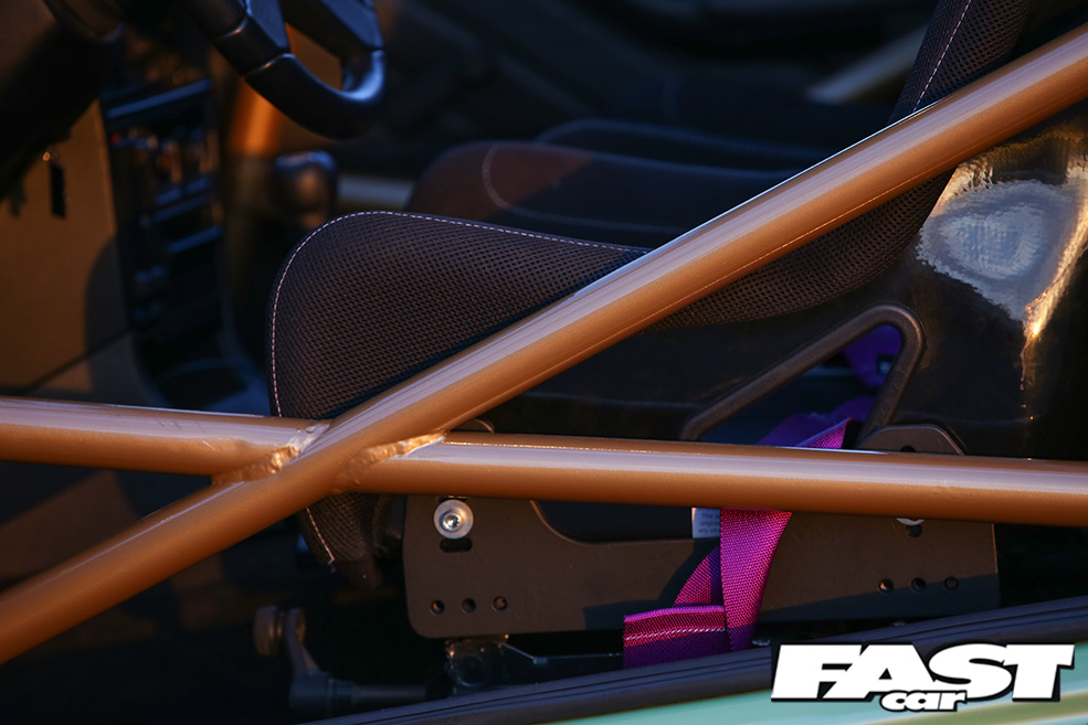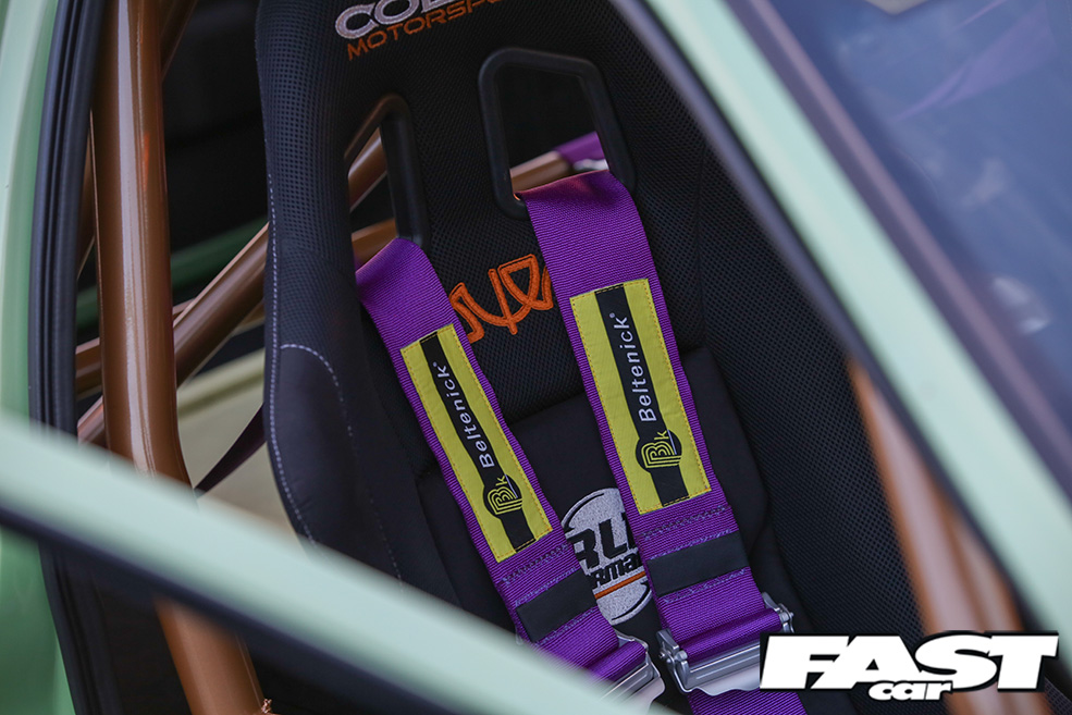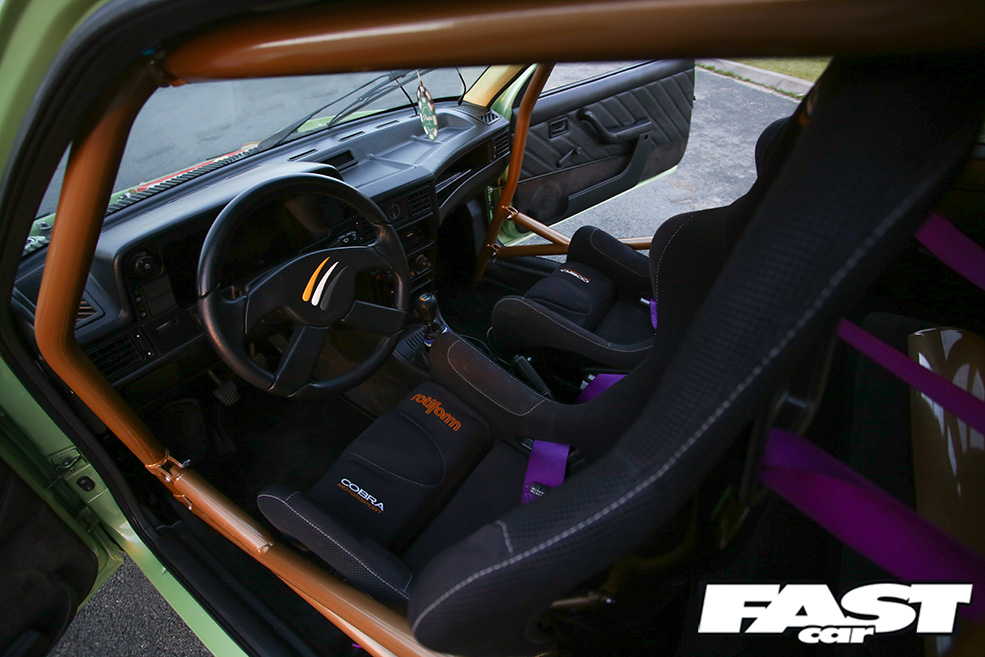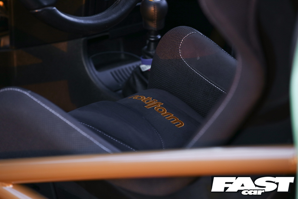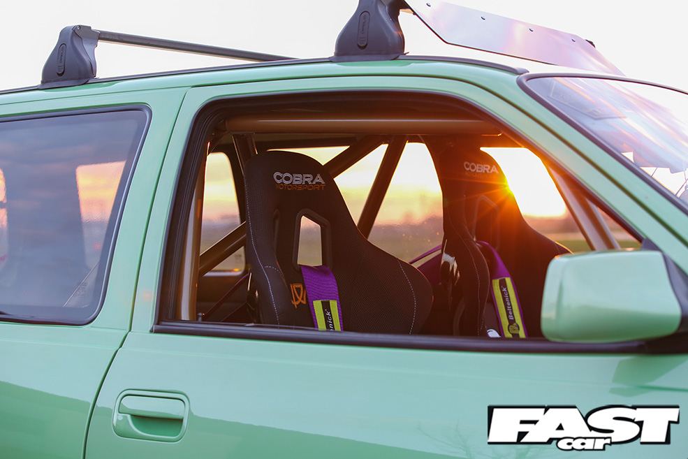 The engine is a 2.0-litre XE, as you’d find in a GSi/GTE, but here it’s been converted to run on twin Weber carbs, which sounds utterly sublime – particularly combined with Remco’s own home-brewed stainless exhaust system. It nestles jewel-like in a fully shaved bay, the top mounts raised and the fluid reservoirs and battery relocated.